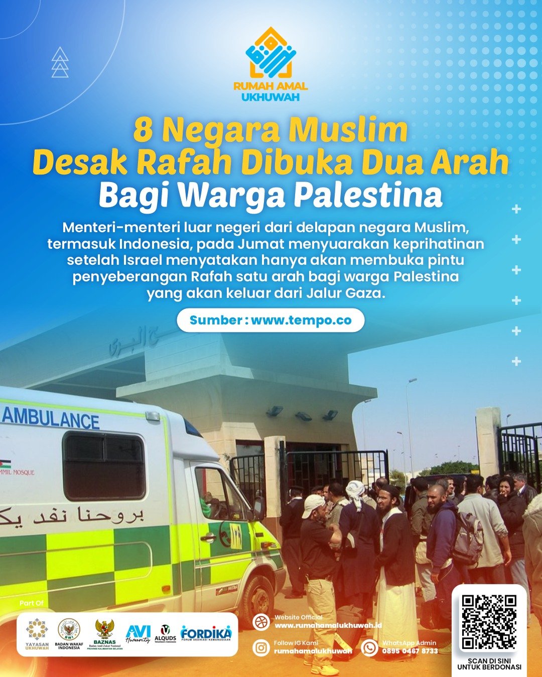 8 Negara Muslim Desak Pembukaan Perbatasan Rafah untuk Palestina
